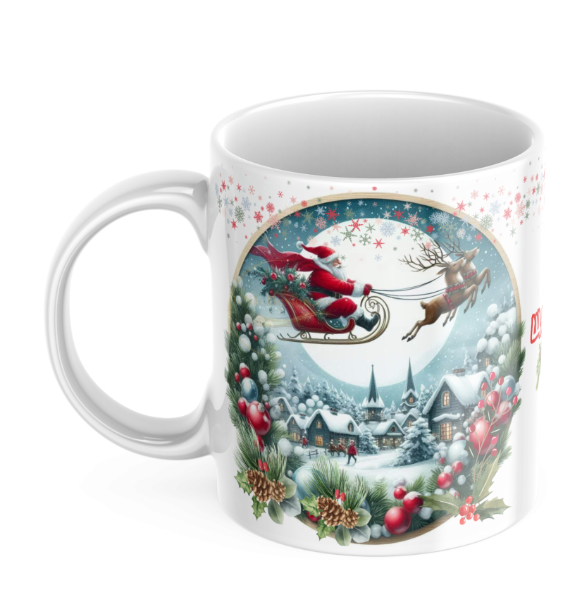 Потопи се в магията на Коледа с тази красива керамична чаша с коледен дизайн.